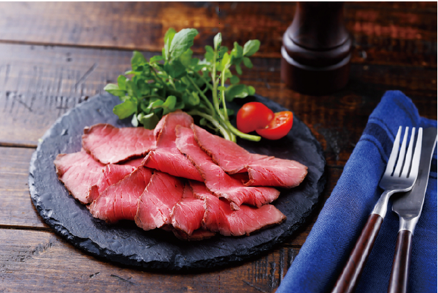 ローストビーフのおいしさの決め手は、肉の旨みとしっとりと柔らかな食感だ。一般的な加熱方法に比べて低温でより長く加熱することで、しっとりやわらかな食感を引き出した。