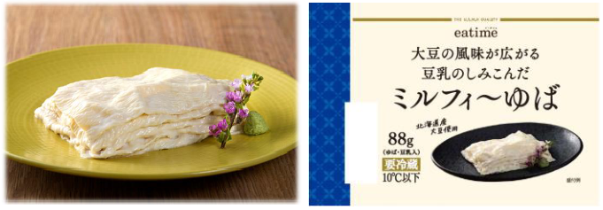 ユナイテッド・スーパーマーケット・ホールディングス(株) (東京都千代田区、藤田元宏社長)はプライベートブランド(PB)商品「eatime(イータイム)」 から、「大豆の風味が広がる豆乳のしみこんだミルフィ~ゆば」を6月10日(金)に新発売する。88gいりで本体価格258円。