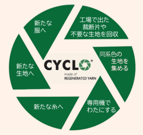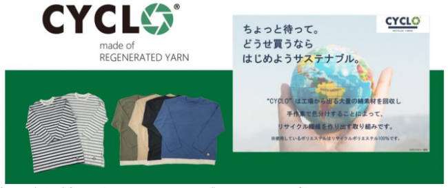 今回CYCROシリーズとして発売する、Tシャツとチュニック26種類には、製造業者で不要になった生地や、工場で出た裁断片を色合いごとに集め、GRS認証を受けた工場でつくったリサイクルコットン糸CYCRO®を使用している。通常のコットン糸を使用した場合と比較し、約338トンの二酸化炭素排出と約30万トンの水、約30ヘクタールの土地、約33万メガジュールのエネルギー使用量を削減できる。