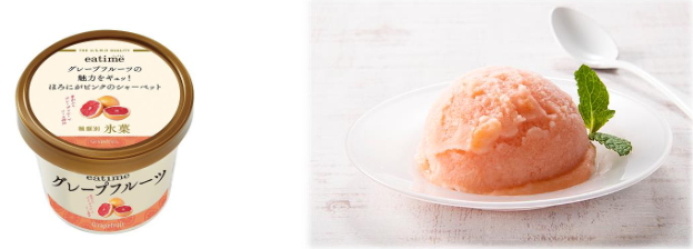 「グレープフルーツの魅力がギュッ!ほろにがピンクのシャーベット」は、濃縮したグレープフルーツ果汁にグレープフルーツの果肉を入れたオリジナルソースで柑橘系の酸味と苦味を引き出した。ピンク色が鮮やかな大人のアイスとして訴求していく。122mlで168円(税別)。