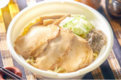 青森県で馴染みのある煮干しラーメンを商品化。煮干しの粉末を固めた「煮干し玉」を、豚骨ベースのスープに溶かして食べる。濃厚な味わいが特長。販売エリアは、青森県、岩手県、秋田県。