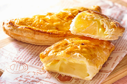 青森県産のりんごのコンポートを使用したアップルパイ。カスタードクリームにレモン果汁を加えることで、クリームの甘さを抑え、りんごの美味しさをより引き立たせている。販売エリアは、青森県、岩手県、秋田県。