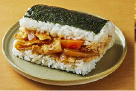豚肉、人参、大根、こんにゃくなどを仙台味噌ダレであえた半田屋No.1メニューである「豚汁」をご飯でサンドしたおにぎりサンド。価格は225円(税込み、以下同じ)。