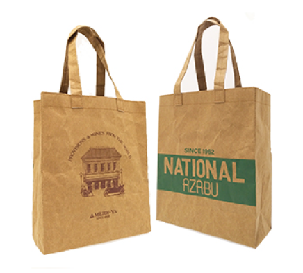 今回は天然由来の素材(天然セルロースパルプ)を主原料に使用した紙袋の風合いで、明治屋ストアーとナショナル麻布のそれぞれのロゴを両面に印刷したデザインだ。価格は1180円(税抜き)。各店それぞれ1000枚限定で販売する。