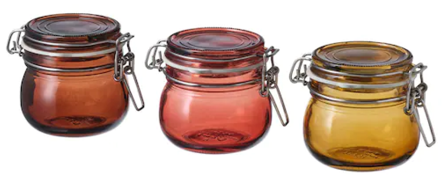 小型のガラス製容器は、自家製ジャムやゼリーから、ハーブやお茶まで、何にでも使える。ふたをしっかり密閉できるので、食品の保存に適している。ガラス容器は食器洗い乾燥機対応となっている。