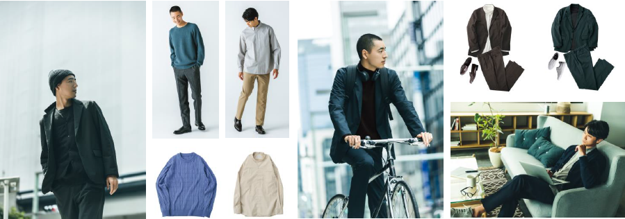 コンセプトは「快適な社会生活のための服」。セットアップスーツやジャケット、スラックスからシャツ、ニット、カットソーといったコーディネートアイテムまで幅広く展開する。どのアイテムを組み合わせてもスタイルがキレイにまとまる調和のとれたラインアップとなっている。