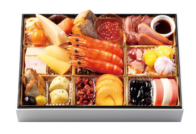 今年の目玉商品は、料理に定評のある「速水もこみち監修おせち 招宝(しょうほう)」1~2人前用1万1000 円(税別)。おせちの定番具材から、「阿波尾鶏の香草焼き」や「メカジキのエスカベッシュ」といった洋風の具材まで揃えたおせちだ。
