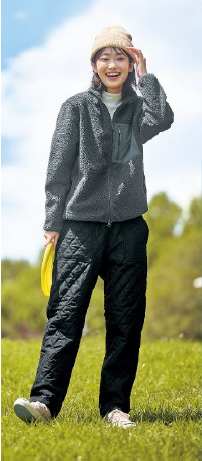 パンツは膝の部分を補強して破れにくくした。丈夫さと温かさを兼ね備え、ストレッチ素材で、すっきりとしたシルエットのパンツ。カラーはブラック、チャコールグレー、ブラウン、サイズはM~XL、価格は4268円。