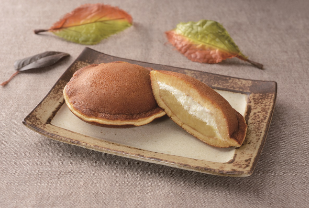 紅はるかを使用した濃密な芋餡で仕立てた“芋クリーム”と、北海道産生クリームを配合した“ホイップクリーム”を、原料に長いもなどを加えた、もちもちとした歯切れの良いどら焼き生地のなかにとじ込めた。濃厚な味わいと甘みが特長の芋クリームと、濃厚で乳味感のあるホイップクリームを楽しめる和洋折衷スイーツ。