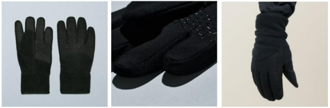 ポリエステルとフリースのコンビデザインの手袋。滑り止め付きで、親指、人差し指部分はスマートフォンにも対応する。カラーは黒。価格は1650円(税抜き、以下同じ)。