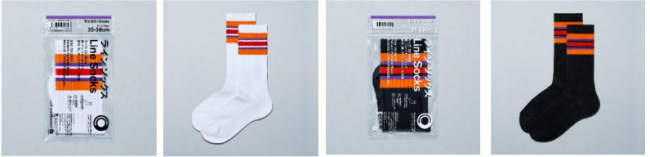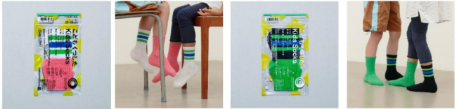 また、人気のこどもくつしたの新色も発売する。定番のコンビニホワイトに加えて、黒を基調としたラインソックスがこどもサイズで新登場する。組み合わせの無地色も、婦人ソックスの人気色と組み合わせた。これにより親子でのお揃いコーデを楽しめる。