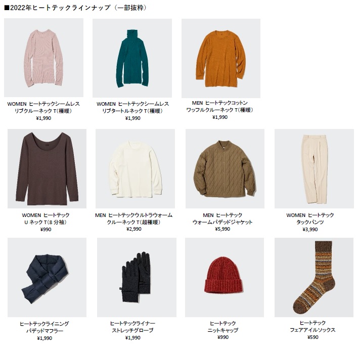 ユニクロnews|リブ素材・ワッフル生地加えヒートテック全98型ラインナップ
