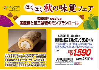 「ほくほく秋の味覚フェア」では、自家製およびオリジナルのデザート計8品、自家製惣菜計7品、菓子計5品など最大30種類の商品を展開する。
