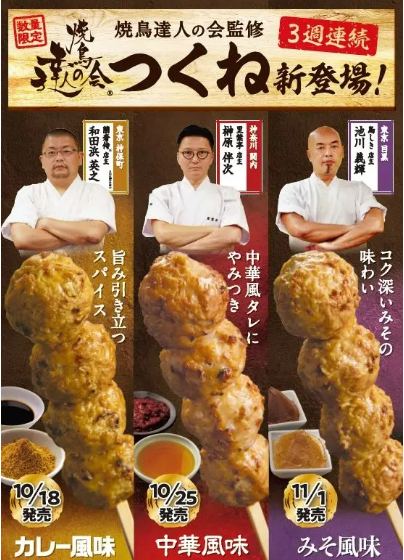 ファミマnews|「焼鳥達人の会」監修のつくね、カレー・中華・みそ風味で新発売