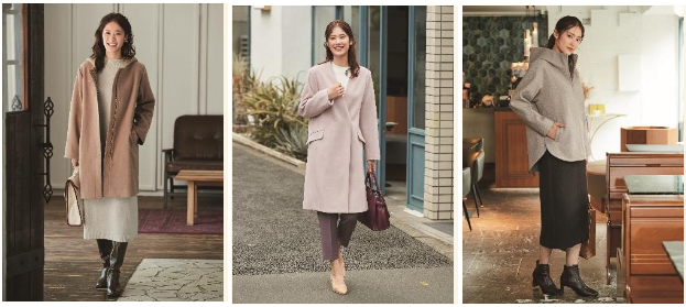 イオン(株)(千葉市美浜区、吉田昭夫社長)は10月21日(金)から、軽量なウールライク素材を使用した新発売の「purelast AirWOOLISH(ピュアラストエアウーリッシュ)」など、レディスコート最大88種類を本格展開する。イオン、イオンスタイル約250店舗と「イオンスタイルオンライン」で扱う。レディスコートのサイズはS~XLで、価格は7800円~1万8800円(税別)。
