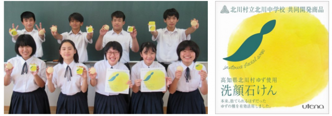 北川村の小学校では、「村のことを知り、課題解決に向けて自ら考える」ふるさと授業「北川学」を取り入れている。その中で、中学3年生が村の産業への貢献策として、ゆずを利用した石けんの発売が企画された。そして、北川村と包括連携協定を結んでいるパートナー企業のウエルシアとウテナが、このアイデア実現に向けてサポートを行った。