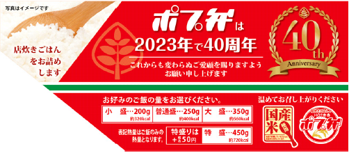 1983年(昭和53年)に、炊きたての店炊きごはんを弁当に盛り付ける「HOT弁当」が誕生した。多くの顧客に「ポプラのお弁当=ポプ弁」として親しみをこめて呼んでもらったことをきっかけに「ポプ弁」の愛称をつけた。ポプラの歴史をつくってきた「ポプ弁」の誕生から 40周年を迎えるにあたり、ありがとうの気持ちを込めた「ご愛顧感謝のお弁当」を発売する。