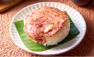 炭火焼きにした牛たんスライスを丸ごと1枚のせた、ボリューム感のあるおむすび。ご飯は牛たんと相性のよいネギ塩だれ飯にした。価格は390円(税抜き、以下同じ)、販売エリアは宮城県。