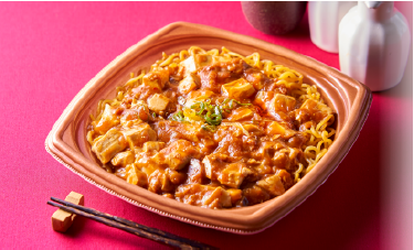 宮城県中華飲食生活衛生同業組合認定の、仙台マーボー焼そば。従来よりもより香ばしく仕上げた揚げ焼きの麺に、刻んだ椎茸や筍などを加えたマーボー餡がほどよく絡む。価格は510円、販売エリアは宮城県、青森県、秋田県、岩手県、山形県。