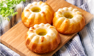 宮城県の観光スポット「蔵王のお釜」をイメージしたチーズシフォンケーキ。シフォンケーキには、蔵王クリームチーズを使用し、風味豊かな味わいに仕上げた。価格は160円、販売エリアは宮城県、山形県。