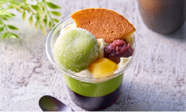 宮城県の老舗和菓子店「喜久水庵」監修の、ずんだと抹茶を同時に味わえる和パフェ。ずんだ大福やあんこ、栗などを宇治抹茶のムースに載せた。価格は398円、販売エリアは宮城県、青森県、秋田県、岩手県、山形県。