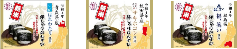 近年、東北各県で銘柄米の開発が相次いでいるが、地元の銘柄米を気軽に味わってもらえるよう、東北のイオンでは例年、新米を使ったおむすびを販売している。今年は青森県産「はれわたり」、秋田県産「サキホコレ」、福島県産「福、笑い」の新米を使ったおむすびを期間限定で販売する。
