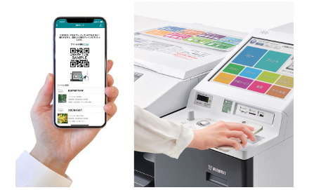 新機能を追加したアプリでは、これまでのプリント予約番号入力に加え、登録後に生成されるQRコードをマルチコピー機にかざすだけでもプリントすることが可能となる。