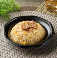 高温で炒め、香ばしく仕上げた炒飯。玉子、ねぎ、チャーシュー、ご飯を炒め、塩ベースの「丸鶏だし」の旨味が特徴の中華湯で味付し、こいくちしょうゆとねぎ油で仕上げた。直火焼したチャーシューをたれで和え、トッピングした。435円。
