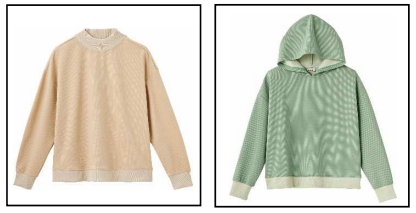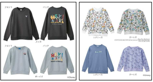 アパレル商品を作る際にどうしても発生してしまう、本来はゴミとなる裁断くずを再紡績して作ったリサイクル生地を使用した。レディース プルオーバー 1639円、メンズ トレーナー 1639円、ガールズ プルオーバー 1419円、ボーイズ トレーナー 1419円。