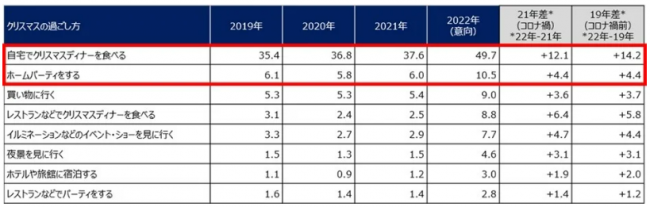 この結果から、コロナ禍初年度は自粛の意味で使用されていた「おうち時間」が当たり前の生活となり、コロナ禍3年目の今年は、「おうち時間」は大人数で集まることも選択肢になっていることが推測される。