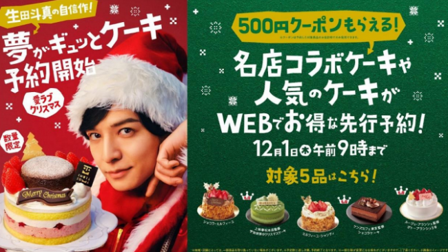 一例として、「生田斗真の自信作!夢がギュッとケーキ」は、生田さんがデザインを監修した。生田さんが子どもの時に感じたクリスマスのワクワクした気持ちを届け、夢を詰め込むというコンセプトで、ケーキには甘酸っぱいいちごのチーズケーキ、上にはチョコのスフレをのせて、いちごもチョコもどちらも楽しめる欲張りなショートケーキに仕上げた。本体価格は3056円。