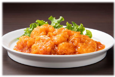 •プリっとした大きめの海老を香味野菜の効いたソースで味わう海老チリ