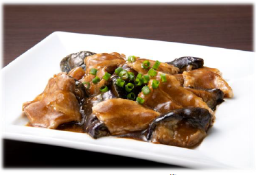 •こだわりの甜面醤を使用した茄子と豚バラの甘味噌仕立て