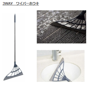 その他、掃除関連商品としてエアコン上部や照明器具の清掃に便利な「伸縮できるロングモップ」、ほうき、へら、ワイパーの3つの機能を備えた「3WAY ワイパーホウキ」など年末の大掃除シーズンに向けて関連商品のラインアップと販売強化を行う。
