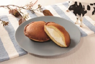 2種類の北海道産生クリームを配合したミルククリームと、フランス産発酵バター入りマーガリンを使用した香り高いミルクムースを、原料に長いもなどを加えた、もっちりとしたどら焼き生地の中に入れた。コクと乳味感のあるミルククリームと、口の中でバターのようにすーっと溶けるミルクムースの味わいが楽しめる和洋折衷スイーツ。214円。
