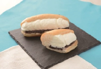 ふんわりとした食感のコッペパンに、北海道産小豆を使用した粒あんと、北海道産生クリームを配合したコクとミルク感がありながらも軽い口どけが特長のホイップクリームを挟んだ。300円。