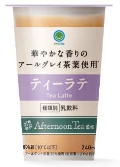 チルド飲料の「ファミマル Afternoon Tea監修 ティーラテ」153円は、アールグレイの香りや味わいが楽しめる飲料に仕上げている。