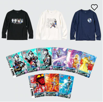 またノベルティとして、「ウルトラマンデッカー」の玩具やアミューズメント筐体で遊ぶことができる「ウルトラディメンションカード」と「データカードダス ウルトラマン フュージョンファイト!」用カードをユニクロオリジナルデザインで用意した。
