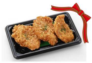 クリスマスシーズンに向け、九州産若鶏のムネ肉をフライドチキン仕立てにした。食べやすいサイズにカットし、スパイスを加えた揚げ衣で包み、中はしっとりジューシー・衣はパリパリ食感に仕上げた。スパイスがきいたプレーン味と人気のガーリック味の2種類を準備した。価格は100g当り198円(税抜き)。