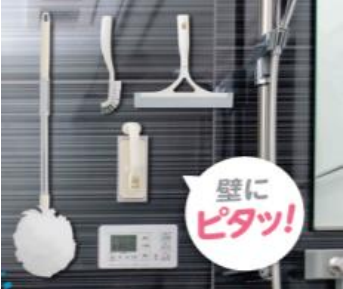浴室の清掃で使用した清掃用品は、濡れたまま床面に置いておくとカビや汚れの原因になるため、ユーザーから収納方法や収納場所に困っているとの声があった。そこで、今回DCMは、壁に設置したフックや床置きラックを使用せず、マグネットでシステムバスの壁などに貼り付け収納できる清掃用品・収納用品を発売する。水切れが良くなり、カビや汚れを防ぐ効果が期待できる。