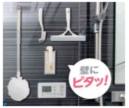 壁に設置したフックや床置きラックを使用せず、マグネットでシステムバスの壁などに貼り付け収納できる。水切れが良くなり、カビや汚れを防ぐ効果が期待できる。