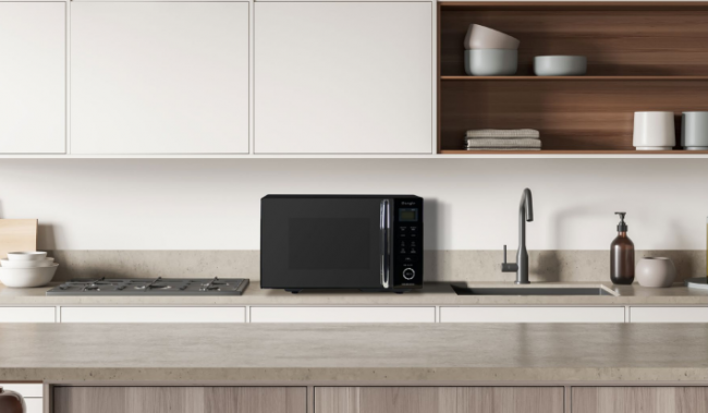 庫内は従来モデルに比べ広く大皿やピザも楽に入る。容量は20リットルと大きくなった。フラットな庫内で、お手入れも簡単だ。