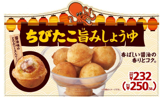 ミニストップ(株)(千葉市美浜区、藤本明裕社長)は、12月9日(金)から、一口サイズの小さな揚げたこ焼き「ちびたこ旨みしょうゆ」を国内のミニストップ店舗で発売する。価格は232円(税抜き)。