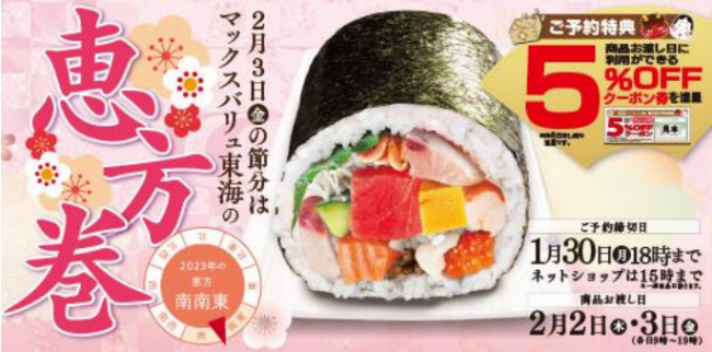 マックスバリュ東海(株)(静岡県浜松市、作道政昭社長)は、店頭およびネットショップで「恵方巻」の予約受注を開始した。