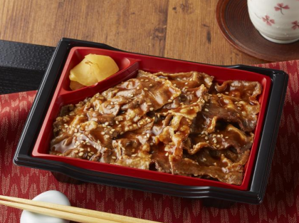 「タレ弁 牛カルビ焼肉重」は、一つ星シェフ鳥羽周作氏の監修商品で、鳥羽氏監修のタレを使用している。玉ねぎは厚さを厚くして食感を強めた。肉の厚みは約2mmと薄くしタレと絡みやすくした。焼肉の上掛けだれを冬用に現状より濃く味付けした。別添タレ付で、価格は548円(税抜き、以下同じ)