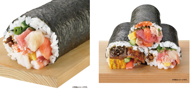 2023年度の恵方巻は“圧倒的な具材感”を特徴にして商品化している。近畿圏では国産紅ずわいがに・サーモン・えび・まぐろなどを使用した「招福 海鮮節分太巻」など13種類、首都圏では北海道産帆立・活〆釜炊き煮穴子・紅ずわいがになど10種類の具材が入った贅沢な「極太幸福海鮮太巻」など5種類を予約販する。