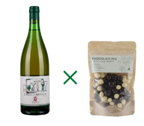 アンペレイア ビアンコ・ディ・アンペレイア〈白(オレンジワイン)/イタリア・トスカーナ〉は750mlで本体価格3600円(以下同じ)。しっかりしたボディーにミネラル・はちみつ、柑橘系の香りと旨味が強くオレンジワイン初心者にも癖がなく楽しめる。このワインに合わせたいチョコレートは「コンフィズリーアダム チョコミックス(レモン、オレンジ、ラズベリー)」。このワインがもつフルーツのトーンとレモンピール、オレンジピールがマッチして、香りが大きく膨らむ。