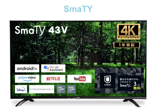 Netflix、Amazonプライムビデオ, YouTubeなど動画アプリがあらかじめインストールされており、Google Playストアで新たなアプリのインストールも可能だ。また、スマホの動画のミラーリングに必要なChromecast built-inやGoogleスピーカーに対応するGoogleアシスタントボタンも搭載。TVに向かって話しかけるだけで簡単に操作できる。