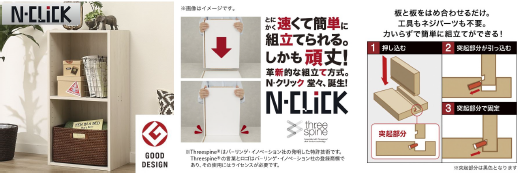 2018年から販売を開始した「Nクリック」は、シリーズ累計170万個に上る。工具を使わない、特殊な連結⽅法を採⽤した組み⽴て式だ。各パーツを⼿順通りにはめ込んでいけば完成する。