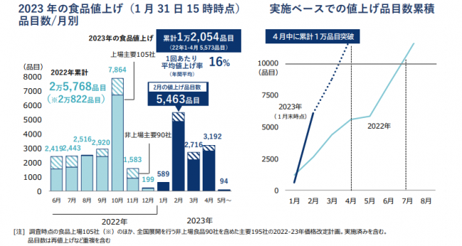 帝国データバンクnews|「食品主要105社」23年4月までに値上げ1万品目超